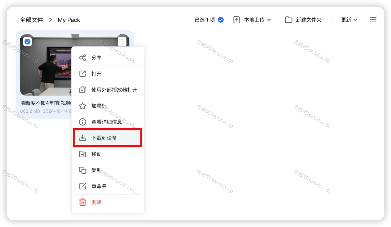 点击个人网盘首页左上角的“云下载”按钮,将上一步复制的链接,粘贴到云下载的输入框中,等待下载。数秒内即可将想要下载的资源下载到你的 PikPak 网盘中,如果想要将网盘中的资源下载到本地,仅仅需要选中资源,右击鼠标选择“下载到设备”即可。