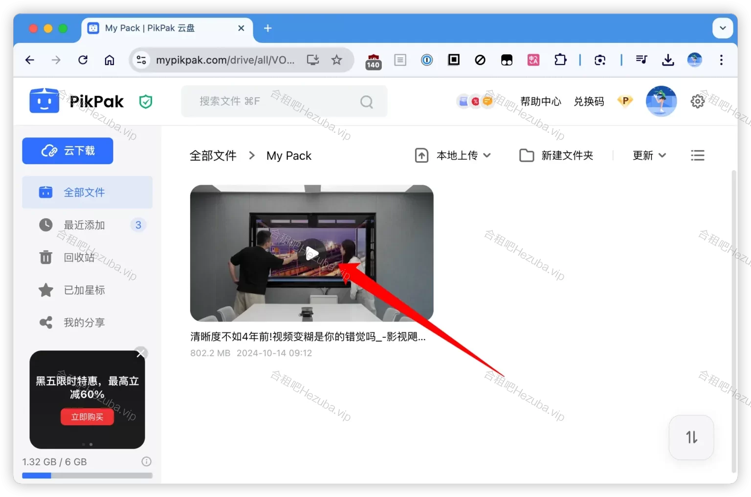 使用云下载后,该影视资源便会保存在你的 PikPak 网盘,直接点击该影视资源,即可直接播放该视频,且如果开通会员,将会以原画质播放视频。