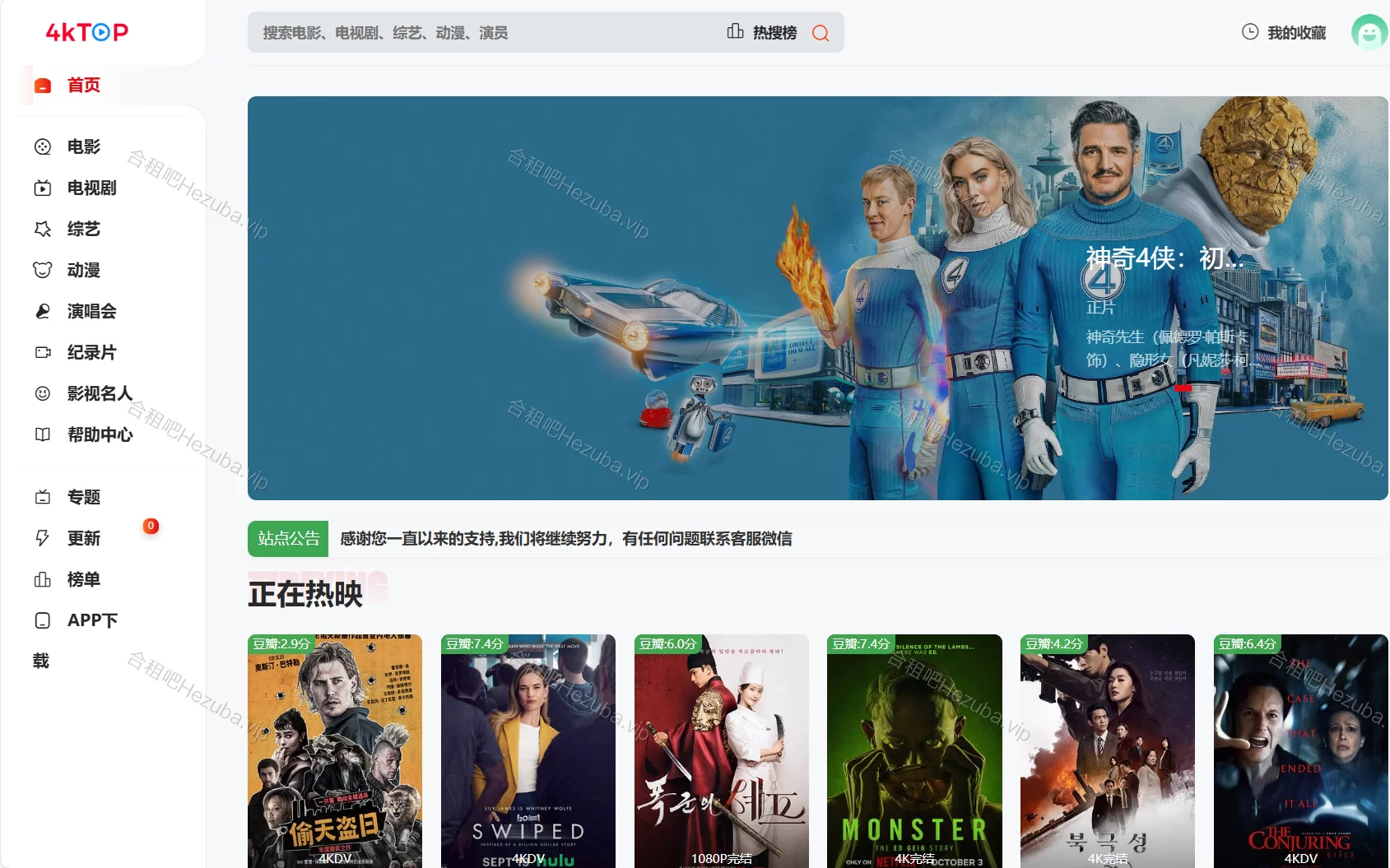专注于提供 4K、蓝光等高清影视资源的分享站点,涵盖国内外多平台流媒体内容,支持 115 网盘、夸克网盘等存储工具关联使用。提供影视资源观看、收藏、下载,同时包含影视分类浏览、榜单查询、专题推荐及帮助中心等服务,还支持 APP 下载以便移动端使用。