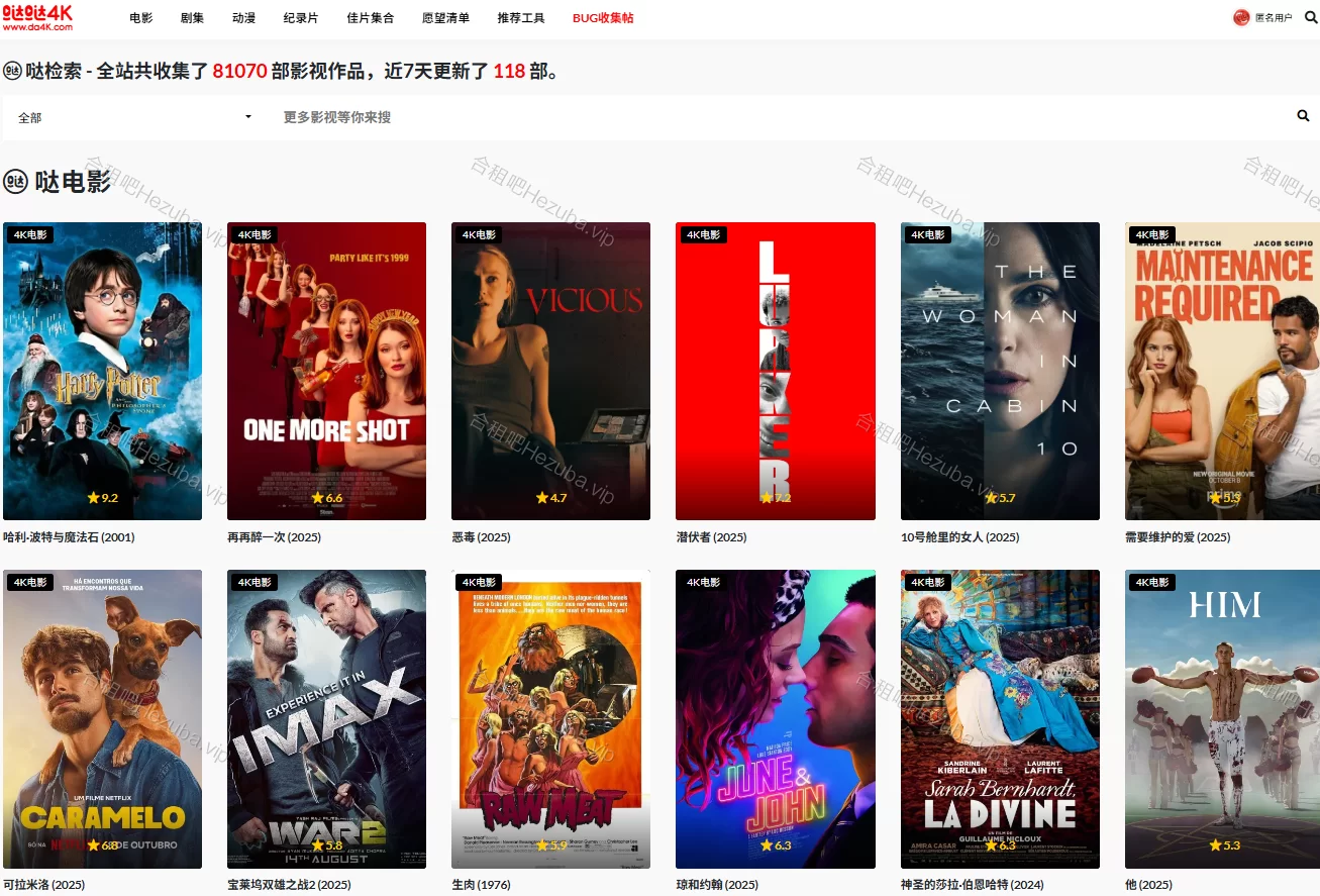 2025年最新4K电影,支持磁力/BT/迅雷下载,每日更新Dolby Vision、3D、2160P、4K等超高清分辨率,全站超80000+热门影视资源!