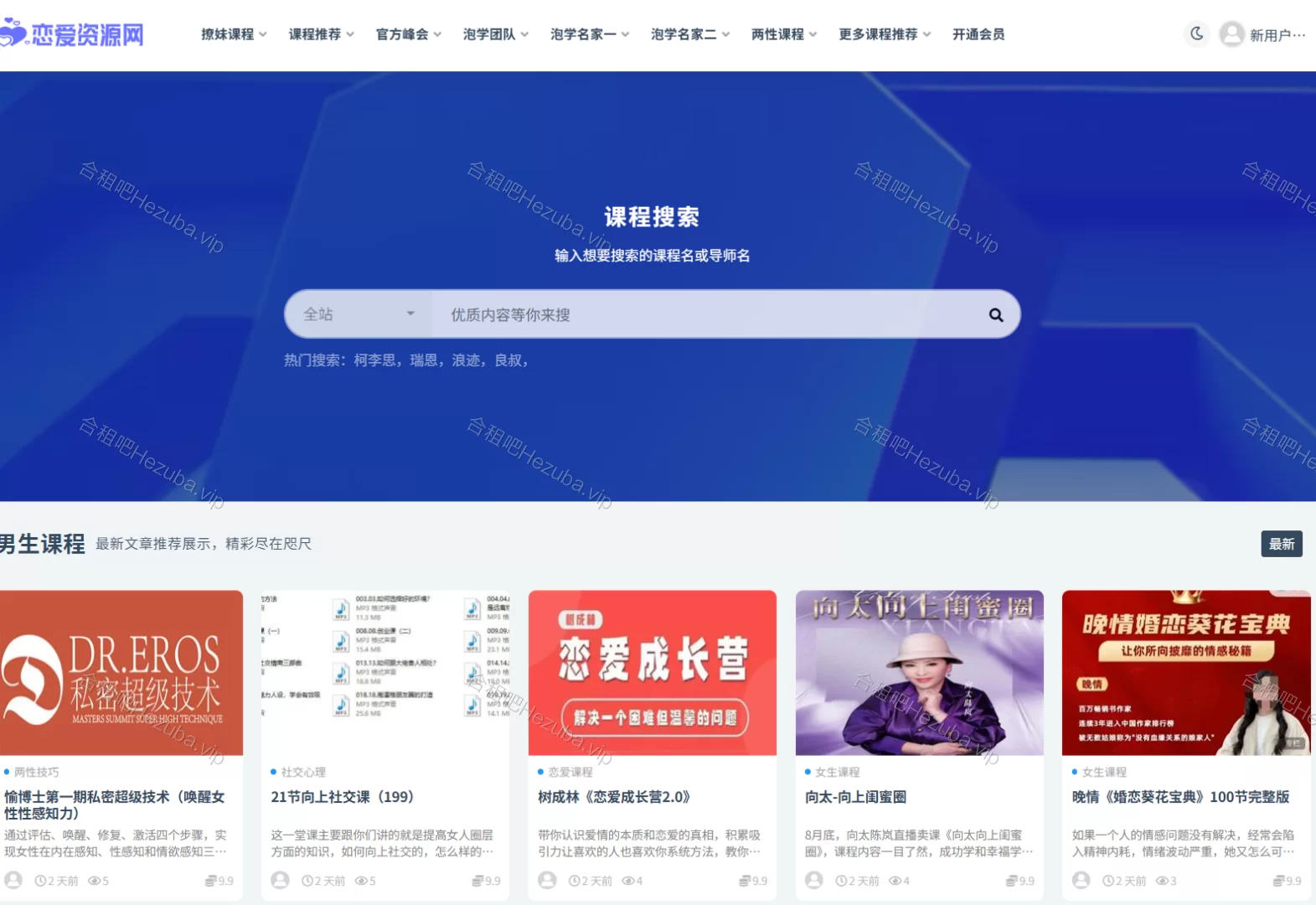 恋爱资源网知名恋爱课程平台,致力于分享实战恋爱课程,恋爱入门,聊天技巧课程,约会技巧课程。