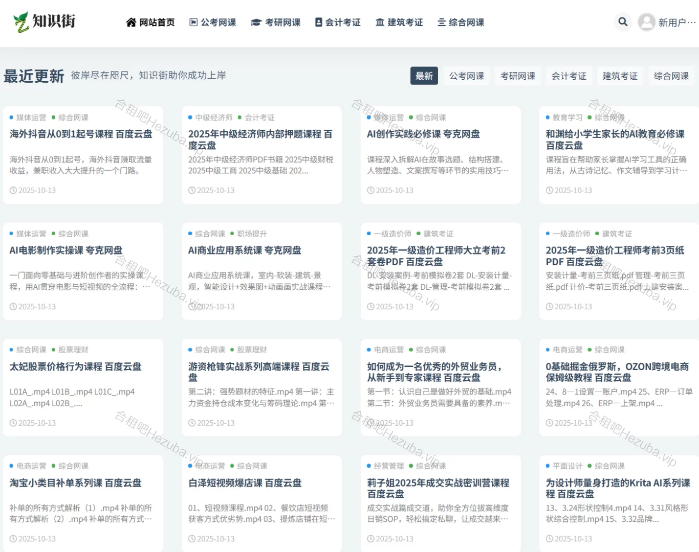 知识街是一家学习资源免费分享平台,你可以在这里免费获取公考资料课程、教师资料课程,建造师资料课程、会计资料课程、考研资料课程、软件教程等学习资源。